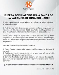 #lima |.🔴 BANCADA DE FUERZA POPULAR LANZA PRONUNCIAMIENTO A FAVOR DE POSIBLE VACANCIA CONTRA DINA BOLUARTE‼️‼️ #radioalturatv Source