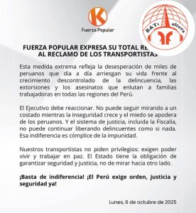 #lima |.🔴 BANCADA DE FUERZA POPULAR EMITE COMUNICADO DE RESPALDO AL PARO DE TRANSPORTISTAS‼️‼️ #radioalturatv Source