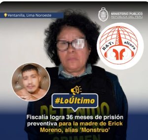 🚨 #LoÚltimo #lima |. 🔴 MAMÁ DEL «MONSTRUO» SE VA 36 MESES PRESA‼️‼️ Fiscalía contra la Criminalidad Organizada de Lima Noroeste (Tercer Despacho) logra 36 meses de prisión preventiva para Martina Hernández por los presuntos delitos de organización criminal y tenencia ilegal de explosivos. Hernández es madre de Erick Moreno, alias ‘Monstruo’, quien es el presunto líder de la organización criminal ‘Los injertos del cono norte’. 🔎 Ello fue posible tras la apelación presentada por el referido despacho y sustentada por la Segunda Fiscalía Superior Penal de Lima Noroeste para revocar el arresto domiciliario impuesto a la imputada en primera instancia por el órgano jurisdiccional. #radioaltura Source